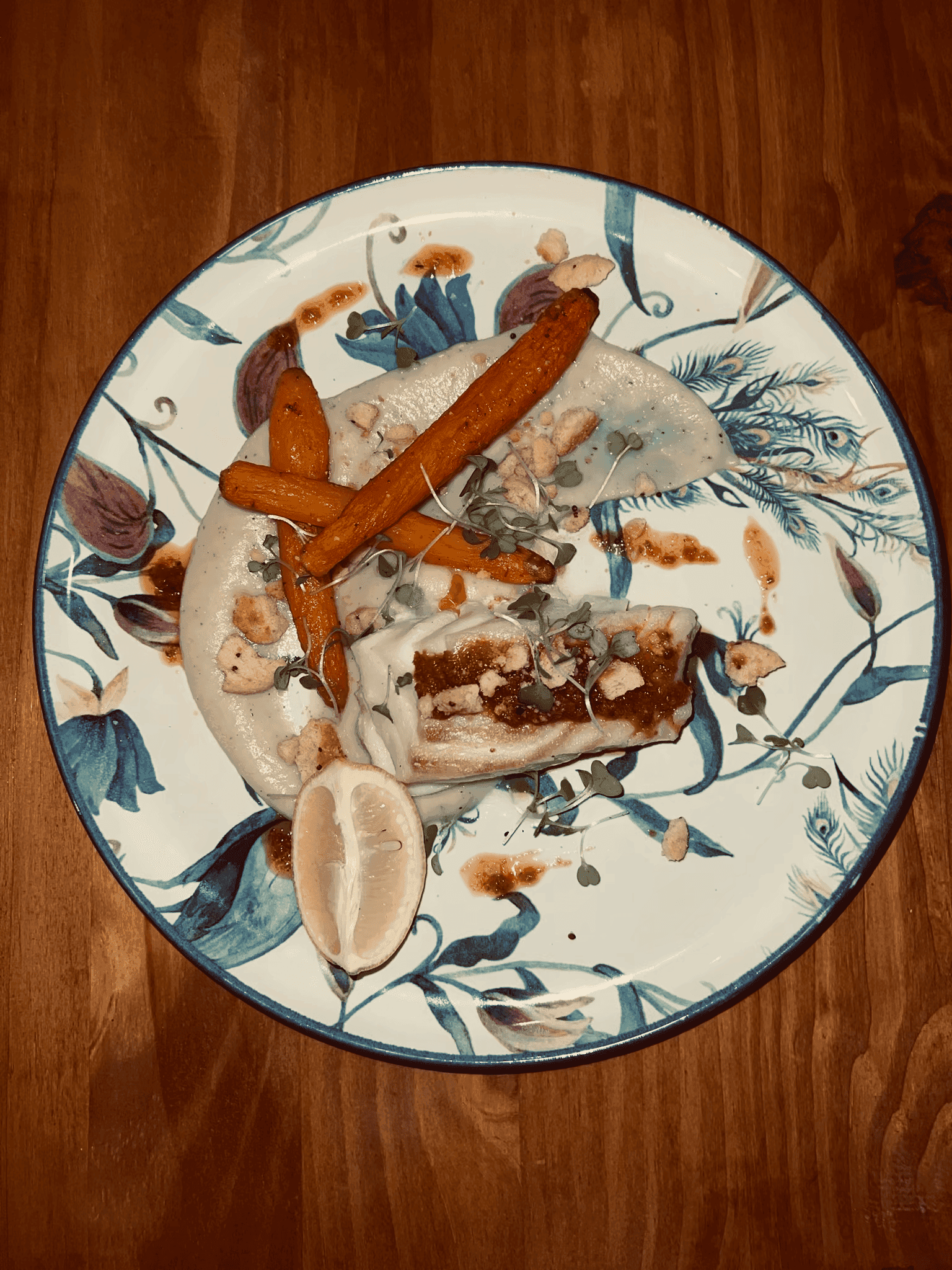 Aux noisettes, citron vert, beurre blanc et purée de panais